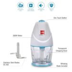 Cello Chop-N-Chop Slice Multi Functional Electric Chopper |Stainless Steel Blades |Low Noise & One Touch Button | Electric Vegetable & Fruit Chopper | White & Blue 300W